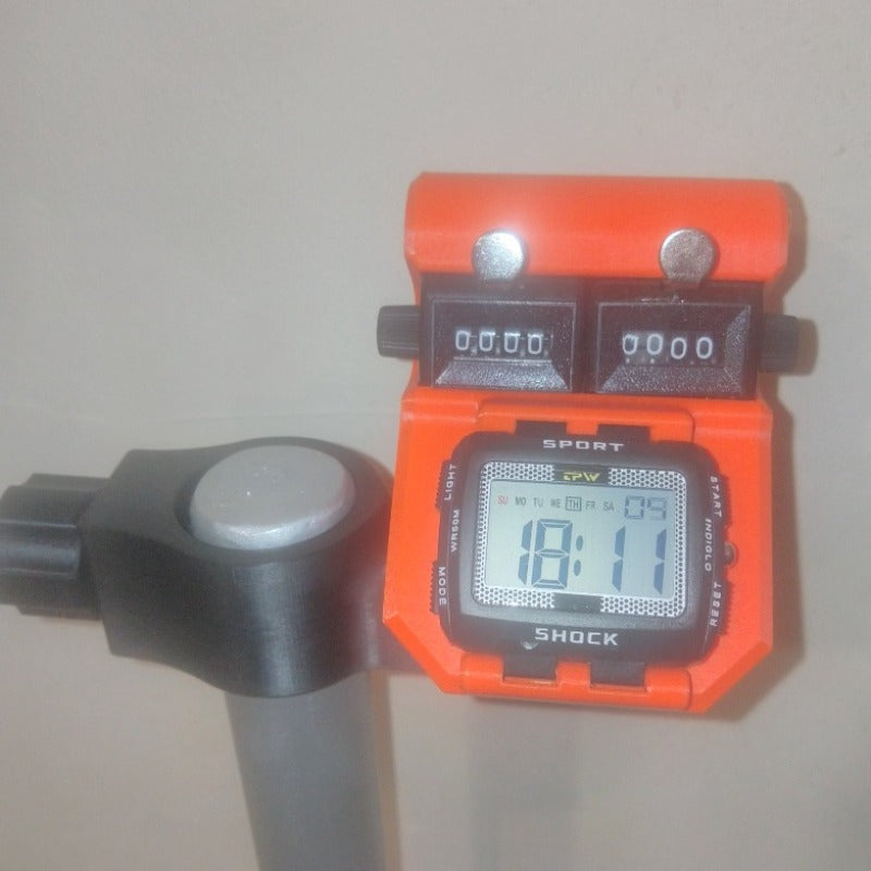 🟠 MX2S® Orange, avec ces 2 compteurs, une montre à grand écran. Compteur réglable en inclinaison par crans, le support ce positionnant à gauche ou à droite.