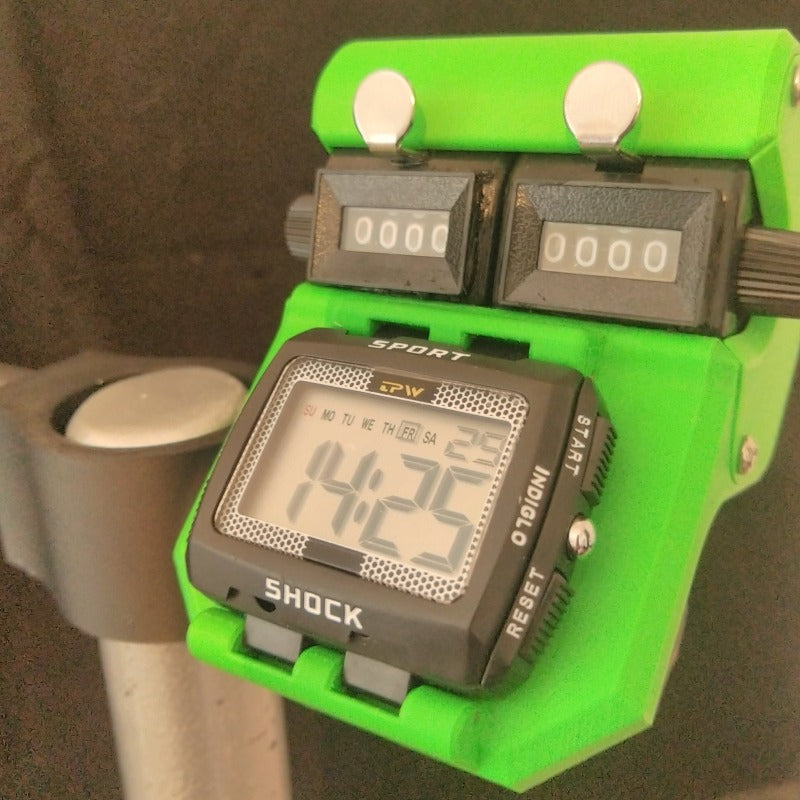 🟢 MX2S® Vert, avec ces 2 compteurs, une montre à grand écran. Compteur réglable en inclinaison par crans, le support ce positionnant à gauche ou à droite.